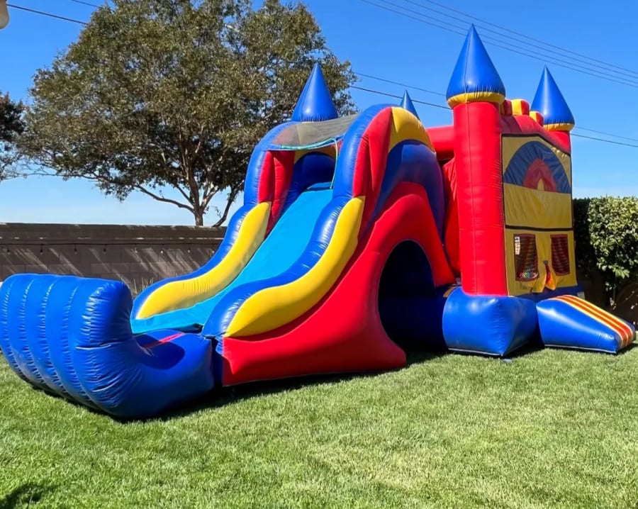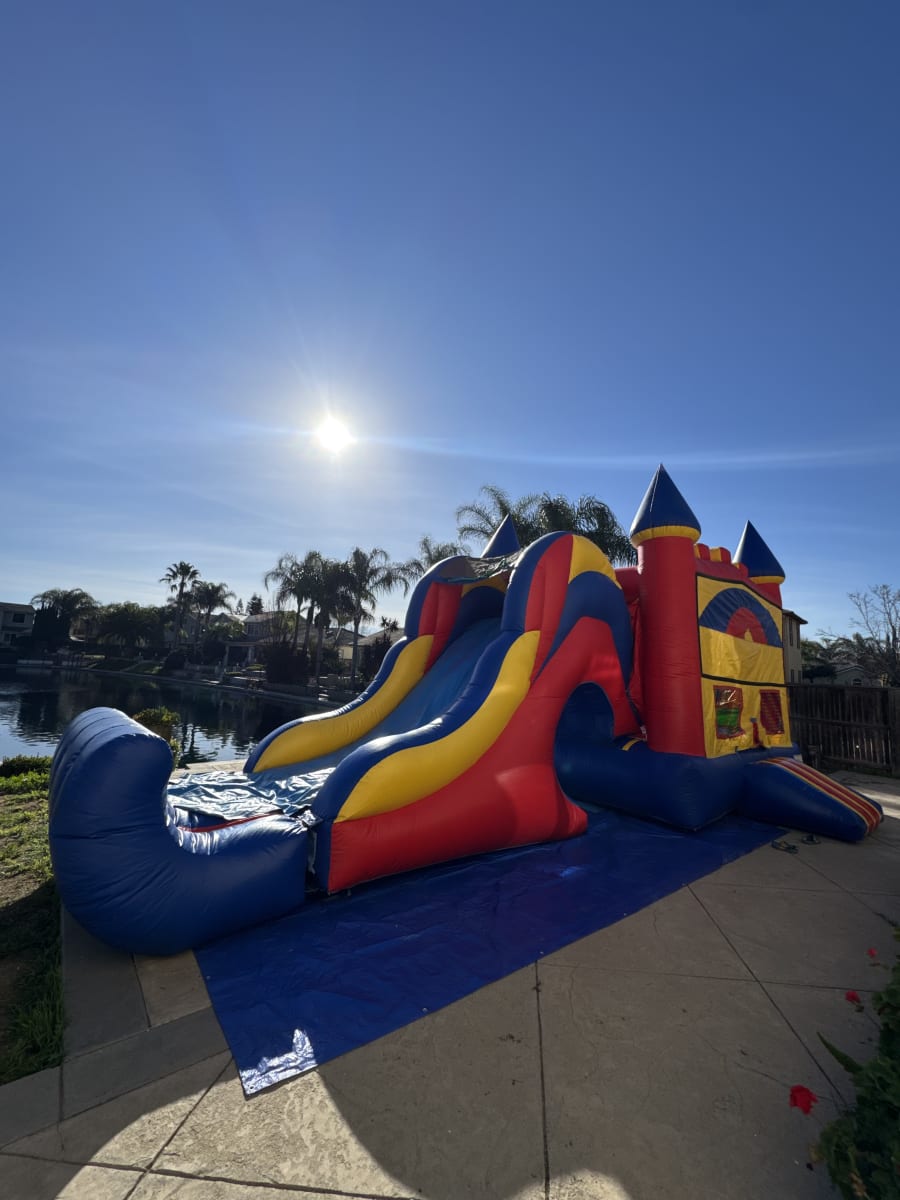 this new 3 in 1 combo includes a basketball hoop, taller slide, and of course the jumping area!